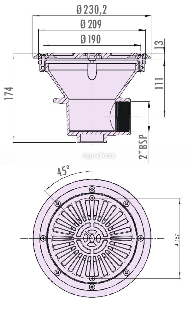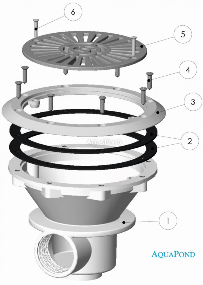 Je vyrobena z bílého ABS plastu odolného vůči UV záření s mřížkou připevněnou k přírubě. Mřížka a příruba je upevněna pomocí šroubů s mosaznými zástřiky, což prodlužuje životnost a zvyšuje pevnost těsnicích dílů. Nejčastěji se používá pro betonové bazény s vnitřní fólií, případně lze použít i pro předvyrobené bazény, do kterých je třeba vyvrtat otvory pro šrouby.