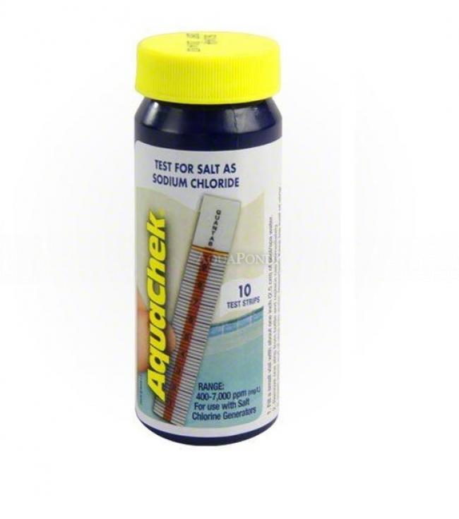 Aquachek proužkový tester pro zjištění koncentrace obsahu soli v bazénové vodě. Pásky naměří hladinu soli (chlorid sodný) od 400 do 7 000 ppm. Proužky jsou jednorázové.