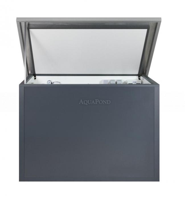Elegantní a snadno instalovatelné řešení pro bazénovou technologii. Technologický box je speciálně navržen pro umístění dávkovacího automatu ASIN AQUA nebo ASIN AQUA S, společně s ASIN SALT, oběhovým čerpadlem filtru a třemi 20 litrovými barely bazénové chemie. Box je vyroben z odolného izolačního panelu (PUR 36 mm), nabízí pohodlný přístup díky otevírací střeše vyrobené z Alucobondu. Vyniká elegantním designem v antracitové barvě.