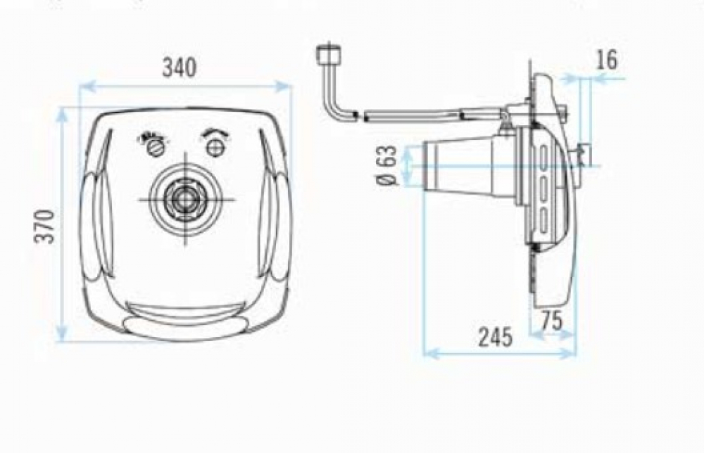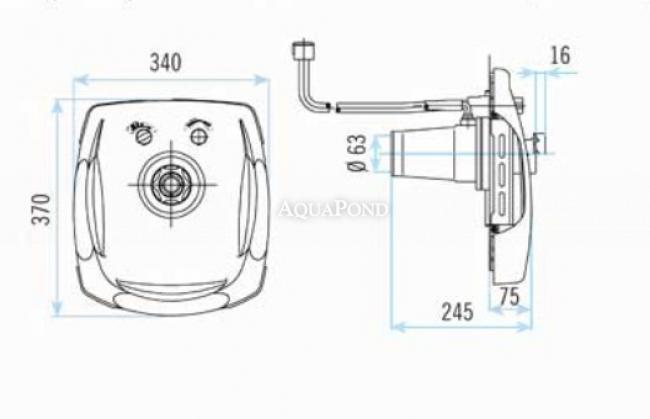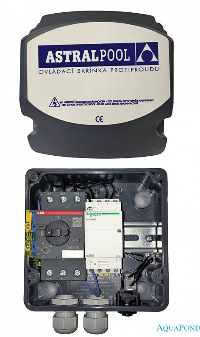 Čelo protiproudu je vyrobeno z bílého plastu odolného vůči standardní bazénové chemii. Směrově přizpůsobitelná tryska, pneumatické tlačítko i ovladač pro přisávání vzduchu jsou černé barvy. Čelo je ze spodní a bočních stran opatrné masivními držadly.