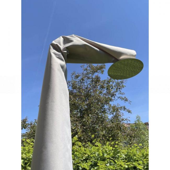 Obal z nepromokavé, odolné látky, idealně na zakrytí sprchy v zimě. Ochranný kryt má dlouhý zip, a lze jej tak snadno přetáhnout přes venkovní sprchu. V horní části je malý otvor slouží k odvětrávání, aby se netvořily plísně, a lze ji připojit k modelům s širokou dešťovou sprchou. Neutrální barva "kašmíru" zabraňuje tomu, aby se kryt na slunci příliš rozpálil, a je velmi diskrétní v zimě.