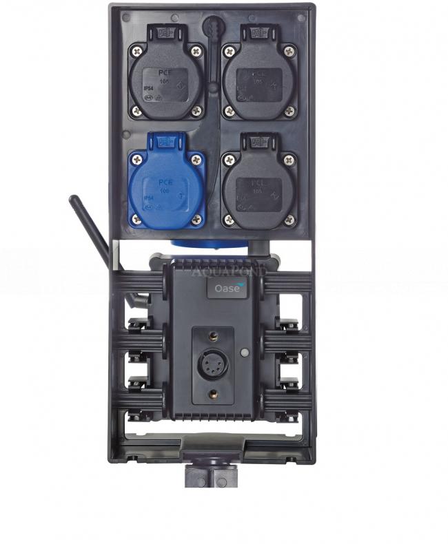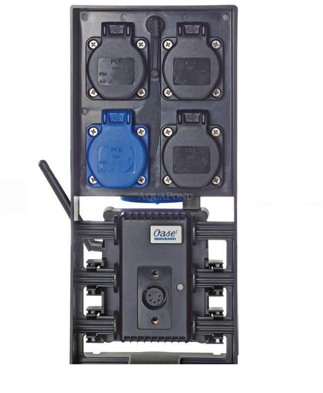 Revoluce v ovládání zařízení v zahradě prostřednictvím Wi-Fi pomocí tabletu, počítače nebo chytrého telefonu. Stačí stáhnout si aplikaci a začít. Lze připojit, provozovat a ovládat až deset koncových zařízení OASE s podporou EGC nebo dálkovým ovládáním (čerpadla, filtry, osvětlení). K ovládání všech čtyř vestavěných zásuvek po dobu 24 hodin lze použít integrovaný časovač. Tři lze vypnout a zapnout a jednu také ztlumit. Díky ochraně proti stříkající vodě ideální pro celoroční použití.
