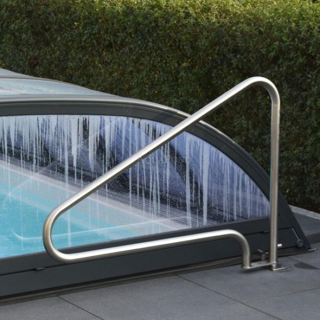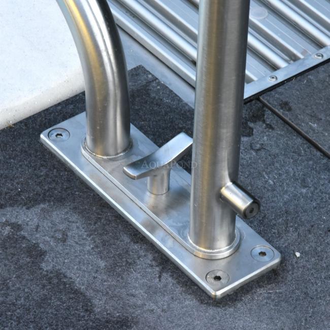 Příslušenství, které zaručuje pohodlný a pohodový vstup do bazénu a výstup z něj.Otočné madlo pro skimmerové bazény přináší ideální řešení. Praktický mechanismus s centrální pojistkou umožňuje rychlé otočení madla a zároveň zajišťuje pevné a stabilní uchopení bez nežádoucího pohybu – v každé poloze.Madla z leštěné nerezové oceli představují elegantní a moderní řešení pro skimmerové bazény, zejména v prostředích, kde je důležitý design a vizuální dojem. Leštěný povrch nerezové oceli vytváří vysoce lesklý, zrcadlový efekt, který dodává bazénu luxusní a profesionální vzhled. Kvalitní nerezová ocel typu AISI 316Ti, zajišťuje vynikající odolnost vůči korozi, a to iv náročných podmínkách – jako je slaná či chlorovaná voda.U skimmerových bazénů, které nemají přepadový žlab po celém obvodu, se madla obvykle umísťují při vstupu do bazénu nebo u schodů. Tato madla by měla být ergonomická, bezpečná a zároveň odolná vůči vodě, UV záření a bazénové chemii.