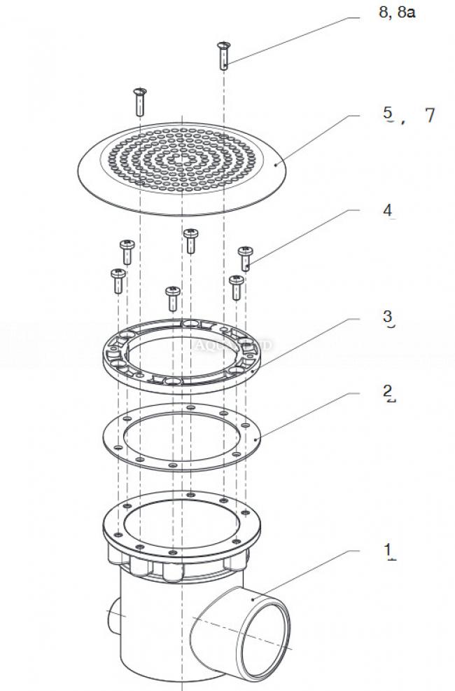 Vyrobena z bílého ABS plastu s mřížkou připevnenou k prírube. Upevnení mřížky a příruby pomocí šroubů do mosazných zápustků. Šrouby se závitem M6 a vnítřní otvory z mosazí k upevnění mřížky k přírube. Lze ji použít u betónových vířivých bazénů a bočních sacích odberů.