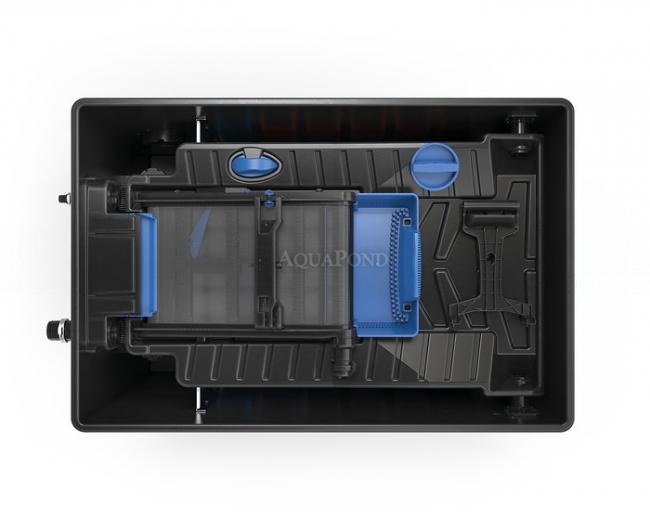Vysoce účinný průtokový filtr s dlouhou životností pro jezírka o ploše až 145 m3, který vyžaduje velmi malou údržbu, protože hrubé nečistoty jsou před vstupem do filtru odděleny: Motor s dvojitým těsněním zajistí mnohem delší životnost. Nastavitelný automatický čistící systém zajistí účinný výsledek oddělování nečistot. Rozdělovač vody bez úzkých míst eliminuje ucpávání. Inovativní bariéry na nečistoty brání vymytí filtru. Čištění je velmi pohodlné: Filtrační pás se čistí sám a filtrační pěny se čistí přímo ve filtru.