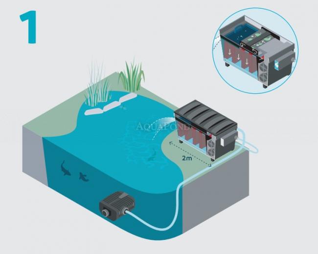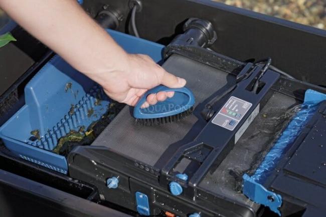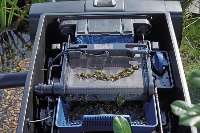 Vysoce účinný průtokový filtr s dlouhou životností pro jezírka o ploše až 140 m3, který vyžaduje velmi malou údržbu, protože hrubé nečistoty jsou před vstupem do filtru odděleny: Motor s dvojitým těsněním zajistí mnohem delší životnost. Nastavitelný automatický čisticí systém zajistí účinný výsledek oddělování nečistot. Rozdělovač vody bez úzkých míst eliminuje ucpávání. Inovativní bariéry na nečistoty brání vymytí filtru. Čištění je velmi pohodlné: Filtrační pás se čistí sám a filtrační pěny se čistí přímo ve filtru.
