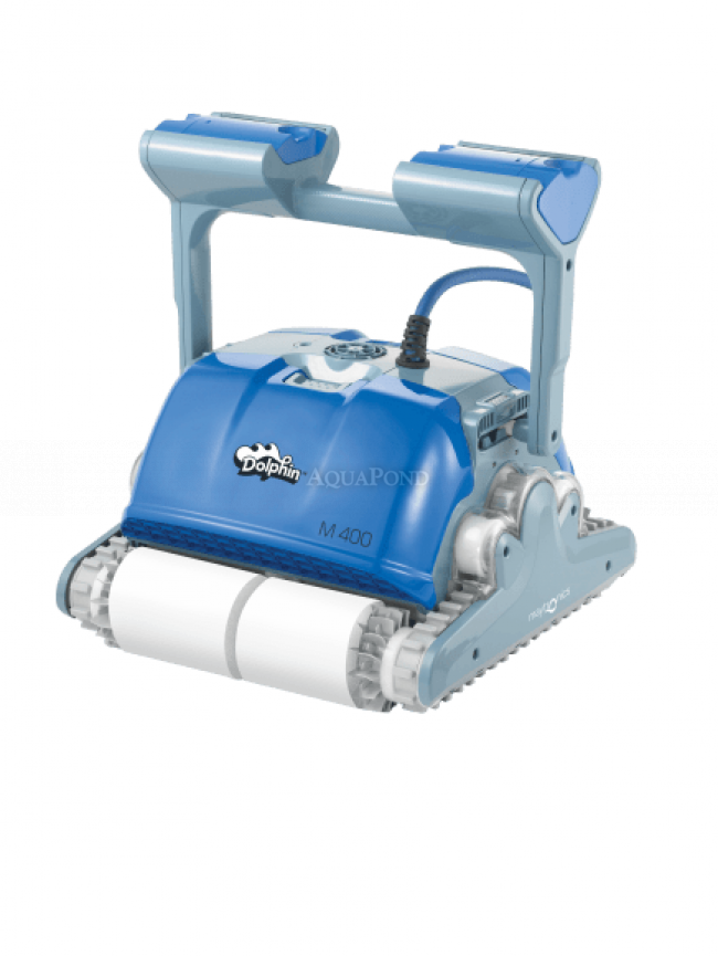 Robotický bazénový vysavač Dolphin M 400 WB s inteligentním skenem je vhodný do bazénů o délce do 15m. Lehce vyjímatelný filtrační koš je přístupný z horní strany. Dolphin má zabudovaný mikroprocesor se samoprogramovací schopností, což mu po krátkém "ohmatání" bazénu umožní zvolit takový čistící cyklus, který bude nejvhodnější pro tvar a velikost vašeho bazénu. Vyčistí nejen rovné plochy, ale také stěny, a to až nad úroveň hladiny. Po vložení do bazénu a následném zapnutí se o nic nemusíte starat, neboť se po ukončení čistícího cyklu sám vypne. Dolphin M 400 WB lze ovládat pomocí aplikace MyDolphinTM na mobilním telefonu nebo tabletu. Ovládání základních funkcí pohybu.