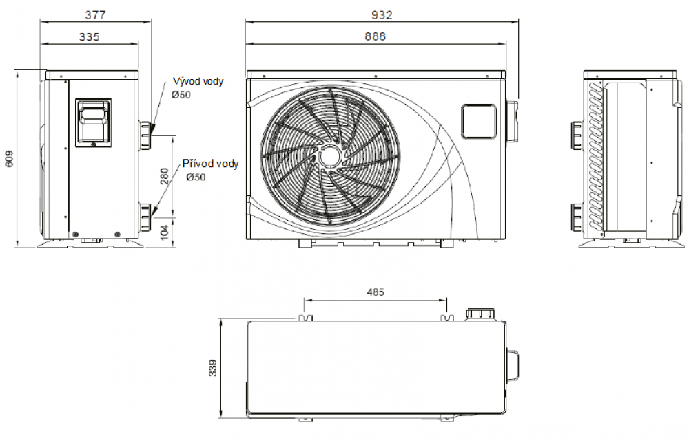Tepelné čerpadlo (full stepless inverter DC compressor, brushless DC ventilator, GoldFin/, včetně 4-cestného ventilu), ochranný kryt, manuál, WiFi, IOT servisní konzola