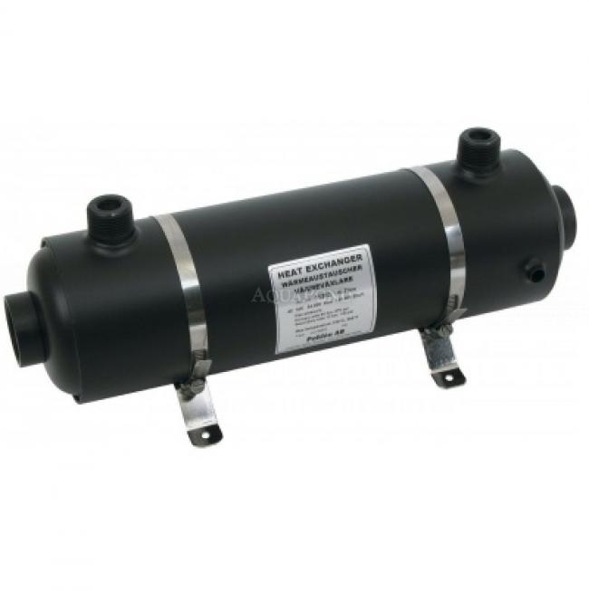 Zapojení výměníku Hi-Flow do filtračního a topného okruhuNa zapojení do sekundárního okruhu s bazénovou vodou slouží vnitřní závit 1 1/2 ". Na zapojení primárního okruhu s topnou vodou slouží vnitřní 1 "závit. Pro upevnění výměníku na stěnu použijte přiložené uchycovací díly. |