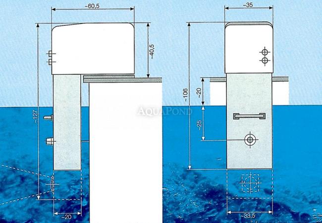 Možnost dodání s teleskopickou podpěrou pro nadzemní bazény. Teleskopická podpěra je dodávána samostatně, není součástí balení.